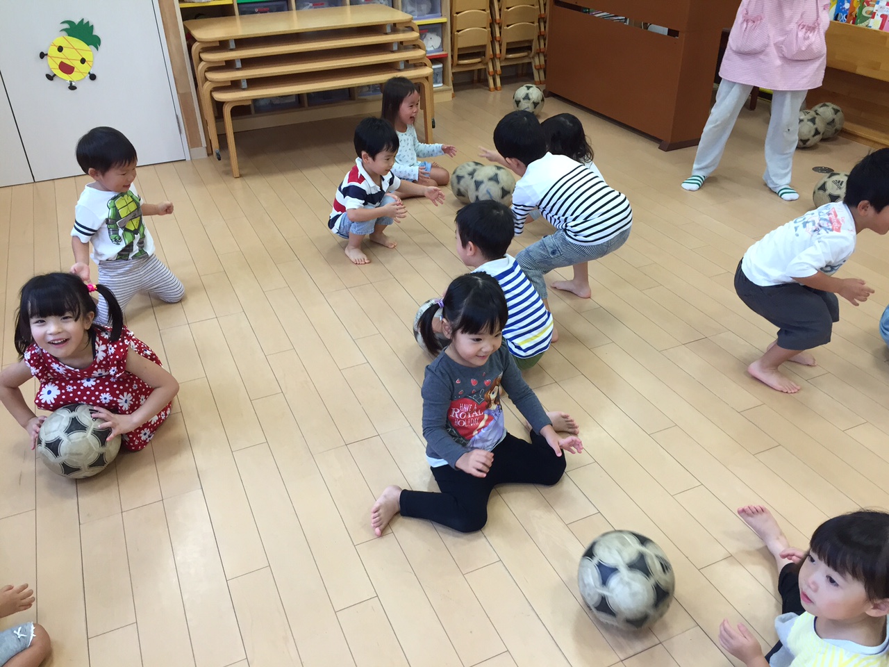 当クラブでは保育園にて巡回指導を行なっています。 現在は麻生区内を中心に6園で行なっています!本日は五月台ルミナス保育園へ出向き巡回指導を行ってきました。五月台ルミナス保育園への巡回指導は今年で5年目を迎え、卒園生も当クラブへ入部していただいています!五月台ルミナス保育園のお友達はみんな元気いっぱいです!園所有のサッカーボールにビブス、コーンとサッカー用具も充実!広い園庭でいつもサッカーを楽しんでいます。本日は生憎の雨でしたが室内でも元気いっぱい!また10月にサッカーを楽しもう!